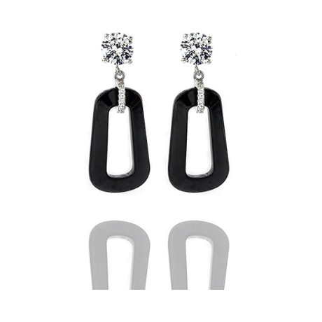 Central Diamond Center Black Ceramic & Pure Brilliance Zirconia CZ Earrings and Necklace