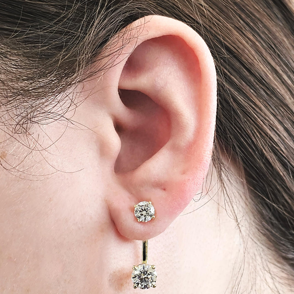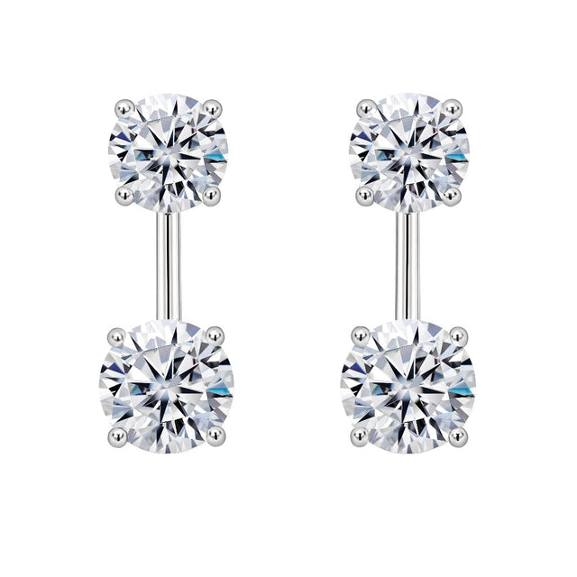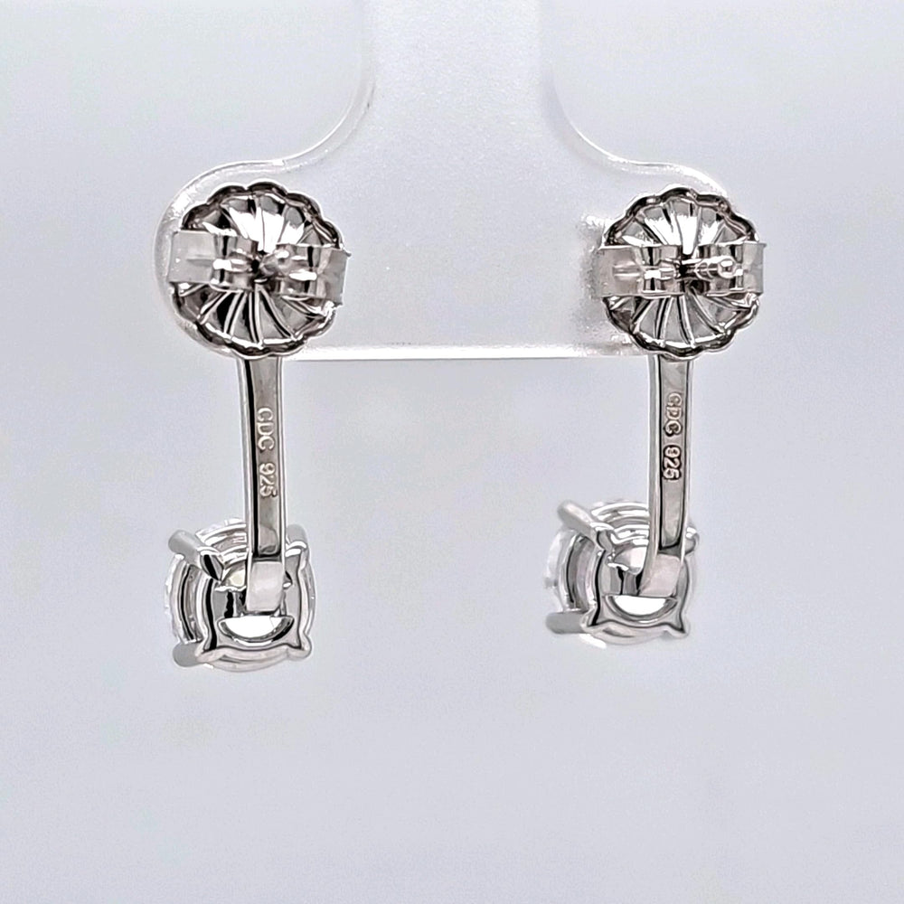 Elevate your favorite stud earrings with these brilliantly crafted sterling silver earring jackets. Designed to add a touch of sophistication and sparkle, each jacket features two round-cut cubic zirconia stones: a 5.25mm (0.50 carat) stone on top and a 6.50mm (1.00 carat) stone at the bottom, totaling 1.5 carats of dazzling brilliance. The sleek and modern drop design is lightweight, weighing only 3.5 grams per pair, making them comfortable for all-day wear.<br> Our earring jackets are crafted from genuine 925 sterling silver and finished to a high polish for a mirror-like shine. Three adjustable height options on the back allow you to choose the perfect length, giving you full styling control. Whether you're dressing up for an evening out or enhancing your daily look, these earring enhancers will bring a refined elegance to any outfit. Hypoallergenic and nickel-free, they’re safe for sensitive ears and arrive ready to gift in a beautiful jewelry box.