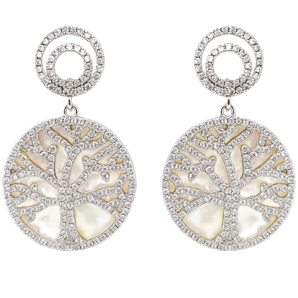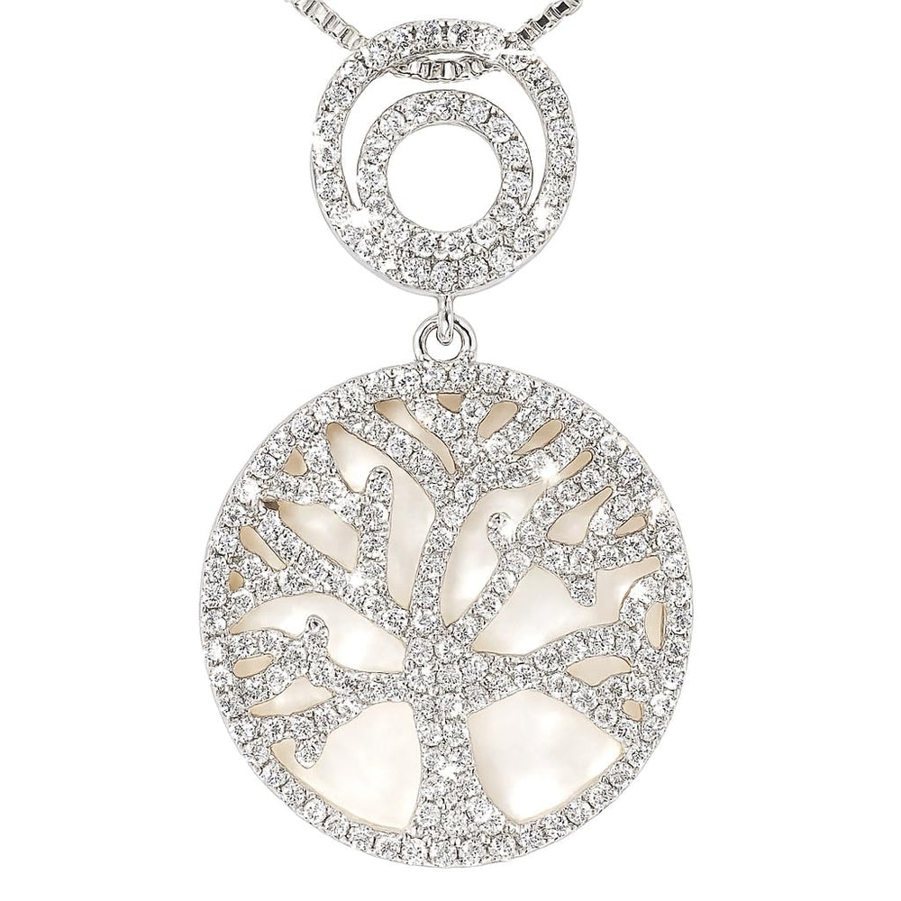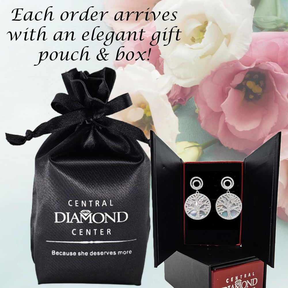 Central Diamond Center Sterling Silver Tree of Life Pendant Necklace or Earrings with CZ and Mother of Pearl β Gift for Women