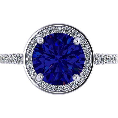 - A unique, spectacular, and affordable engagement ring ; the sparkling blue tones of the Round cut center stone make this ring truly beautiful. Pure Brilliance Zirconia highlight the mounting design.