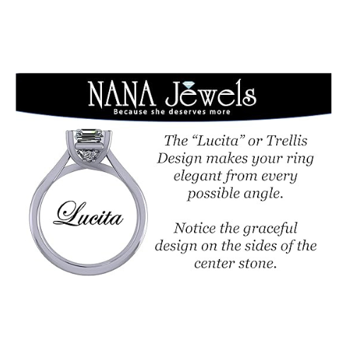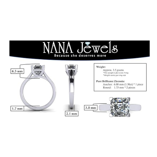 4. This spectacular ring features Pure Brilliance Zirconia which is the finest quality cubic zirconia available today. It is created using only the highest quality raw materials. It features 58 facets & delivers the same level of brilliance as natural diamonds. Engagement rings are meant to last a lifetime as a representation of your love. Nana Jewels has a large collection of wedding rings and wedding sets to choose from: solitaire rings to gold necklace, Asscher to Cushion cut.