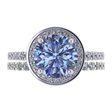 2. A unique, spectacular, and affordable engagement ring ; the sparkling blue tones of the Round cut center stone make this ring truly beautiful. Pure Brilliance Zirconia highlight the mounting design.