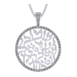 - This necklace is Solid Sterling Silver plated in your choice of Platinum, Yellow, or Rose Gold. You have the choice of 2 sizes in this pendant: 28mm in diameter (about the size of a quarter), or 37mm in diameter (about the size of a silver dollar), and it comes complete with a 22β adjustable box chain. The stones are Pure Brilliance Zirconia. In the 28mm size, there are 51 stones in the bezel measuring 1.5mm each, and in the 37mm, there are 51 stones in the bezel measuring 2.0mm each.