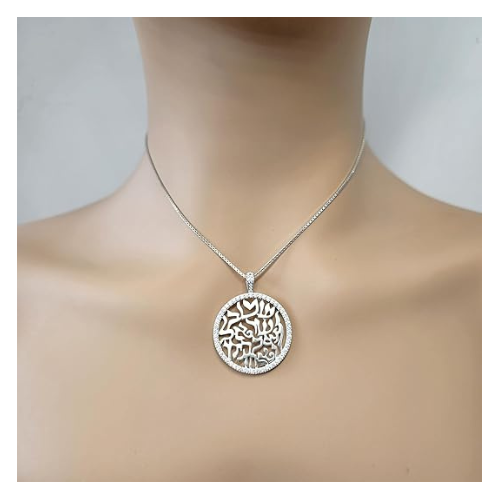 - This necklace has the full Shema Israel Blessing on the pendant. Translated from Hebrew to English, the prayer reads: "Hear, O Israel, the Lord is Our G-d, the Lord is One"