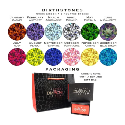 - If you choose only one birth month, then you will receive 1 simulated birthstone stone & 6 diamond simulated Cubic Zirconia (3 on each side). 2 birth months: 2 simulated stones & 4 diamond simulated Cubic Zirconia on the sides, and so on. The Simulated Birth Stones will always be centered. Please refer to the 3rd image for reference.