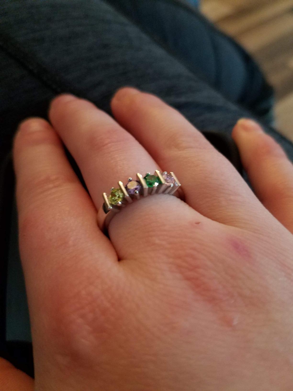 Beautiful ring and at a awesome price. Bought it for a Christmas gift for a family member. It even came with a nice gift bag. It came quicker then they said. If you are looking for a mothers ring I would recommend this one.