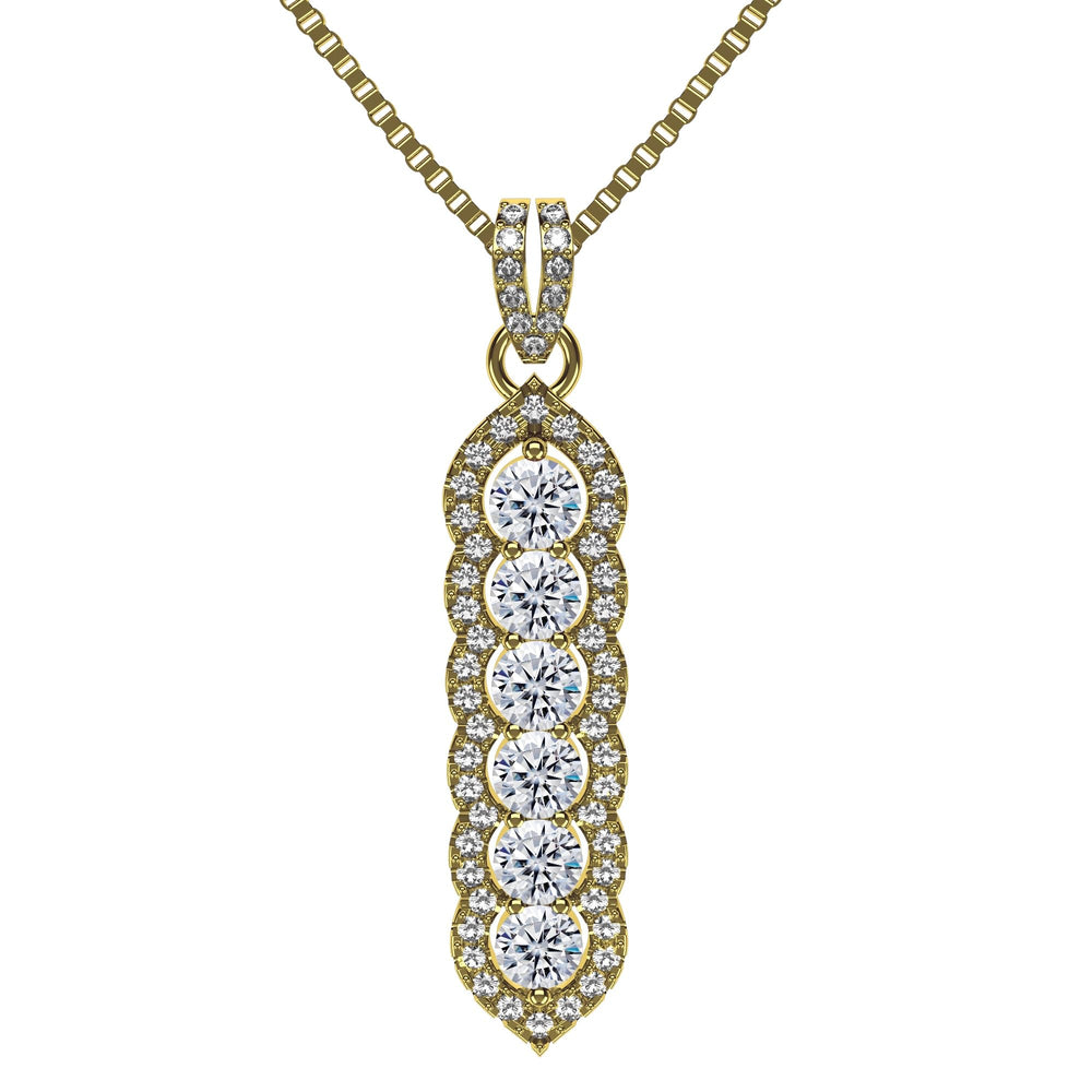 Central Diamond Center Elegant Vertical Tower Pendant Necklace with Sparkling Round Stones – Statement Jewelry for Women – Gift for Anniversary, Birthday, Valentine’s – Fashion Jewelry for Women