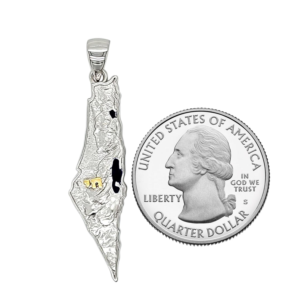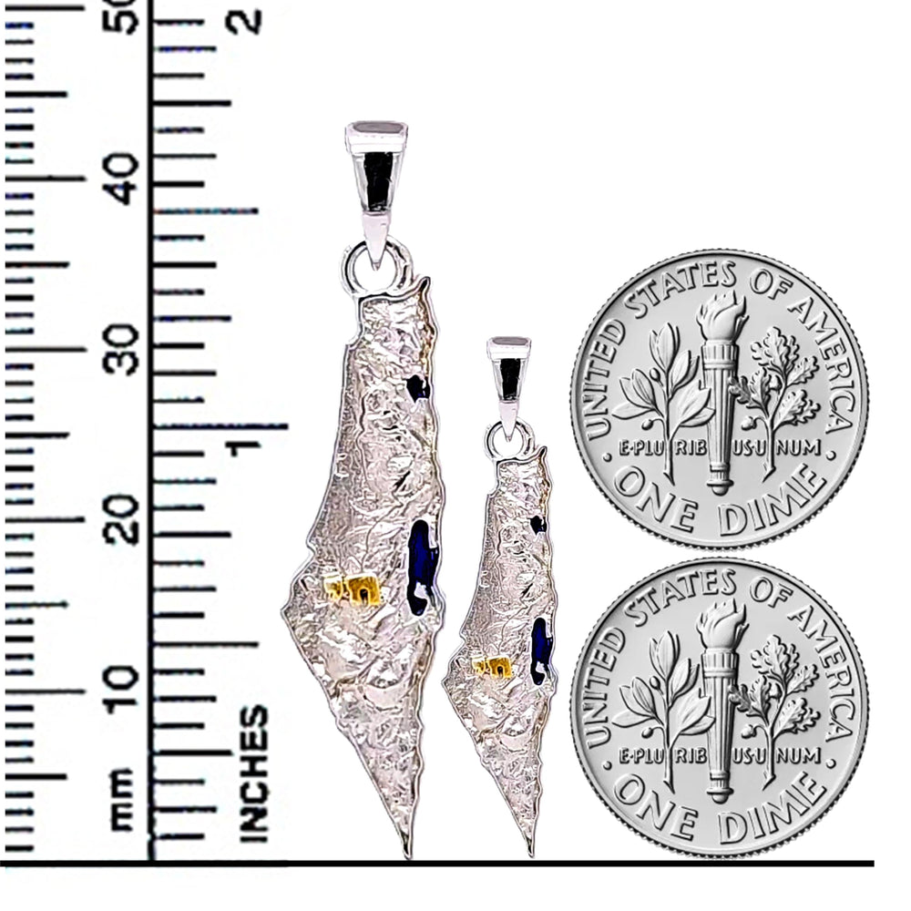 Central Diamond Center Israel Map Necklace/Pendant-Sterling Silver Am Israel Chai on Back Side-3D Map of Israel Large & Small