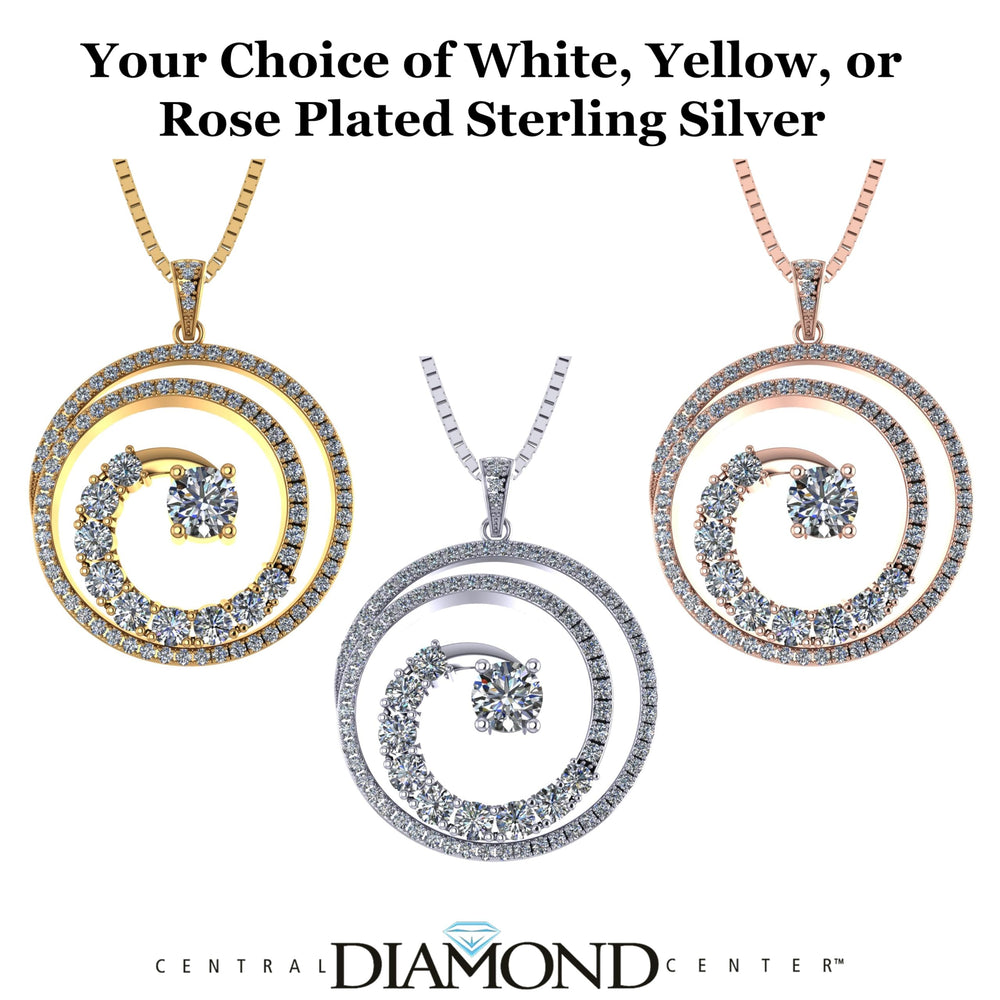 Elegant Swirl Simulated Diamond Necklace – Solid Sterling Silver, Platinum Plated – Dazzling Central Diamond Accent for Women
