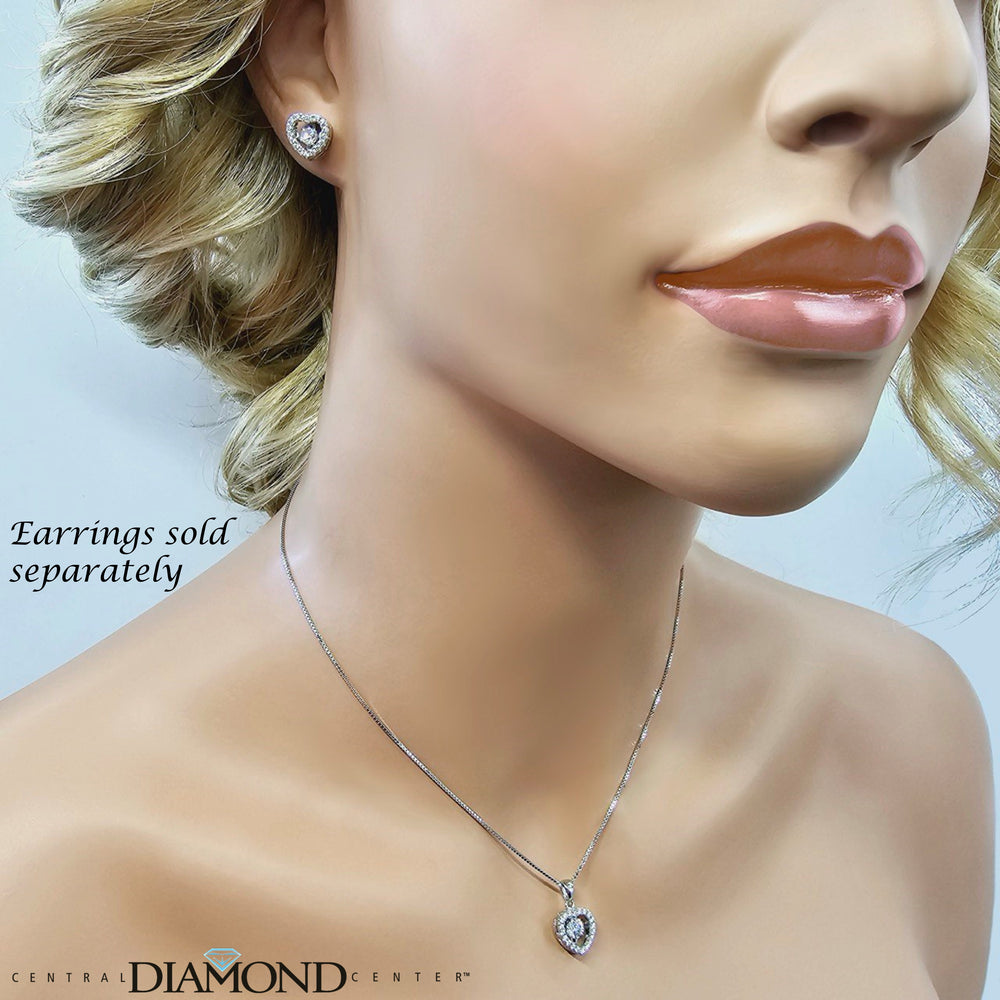 - This heart pendant necklace looks great w/the matching heart earrings. This is cubic zirconia necklace or cz necklace made by Swarovski and looks like a diamond necklace. This is not morganite, moissanite, or pearl necklace. This is a great alternative to a diamonds. It can also be matched with cz stud earrings, cubic zirconia stud earrings, or diamond stud earrings. If you are looking for a necklace that will dazzle, then you have found it. It sparkles like a diamond at a fraction of the cost.