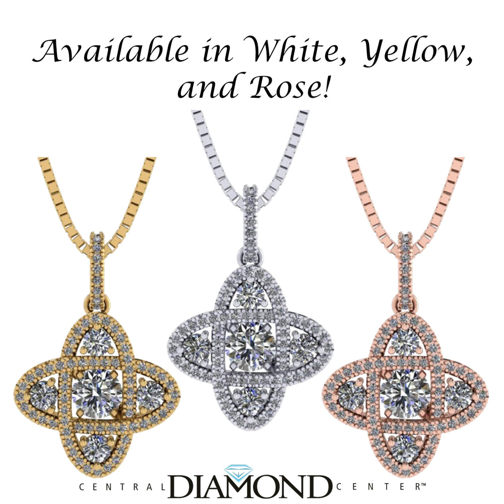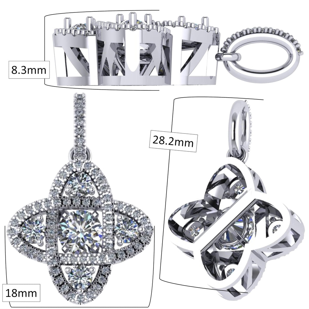 - This beautiful pendant is made from .925 Sterling Silver plated in your choice of Rhodium, Yellow Gold, or Rose Gold. It has one Round Pure Brilliance Zirconia in the center measuring 5.0mm in diameter and surrounded by 62 Round Pure Brilliance Zirconia Accent Stones. Center stone has the look of a 0.50ct Diamond and 1.50cttw. Genuine Components. Sparkly Moving Pure Brilliance Zirconia.