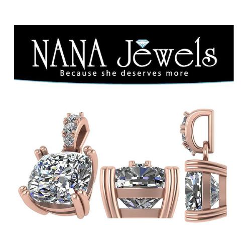 1. This beautiful pendant is made from .925 Solid Sterling Silver plated in Rose Gold. It has one Cushion Cut Pure Brilliance Zirconia in the center measuring 7mm. Center stone has the look of approx. a 2.00ct diamond. This pendant is stamped 925.