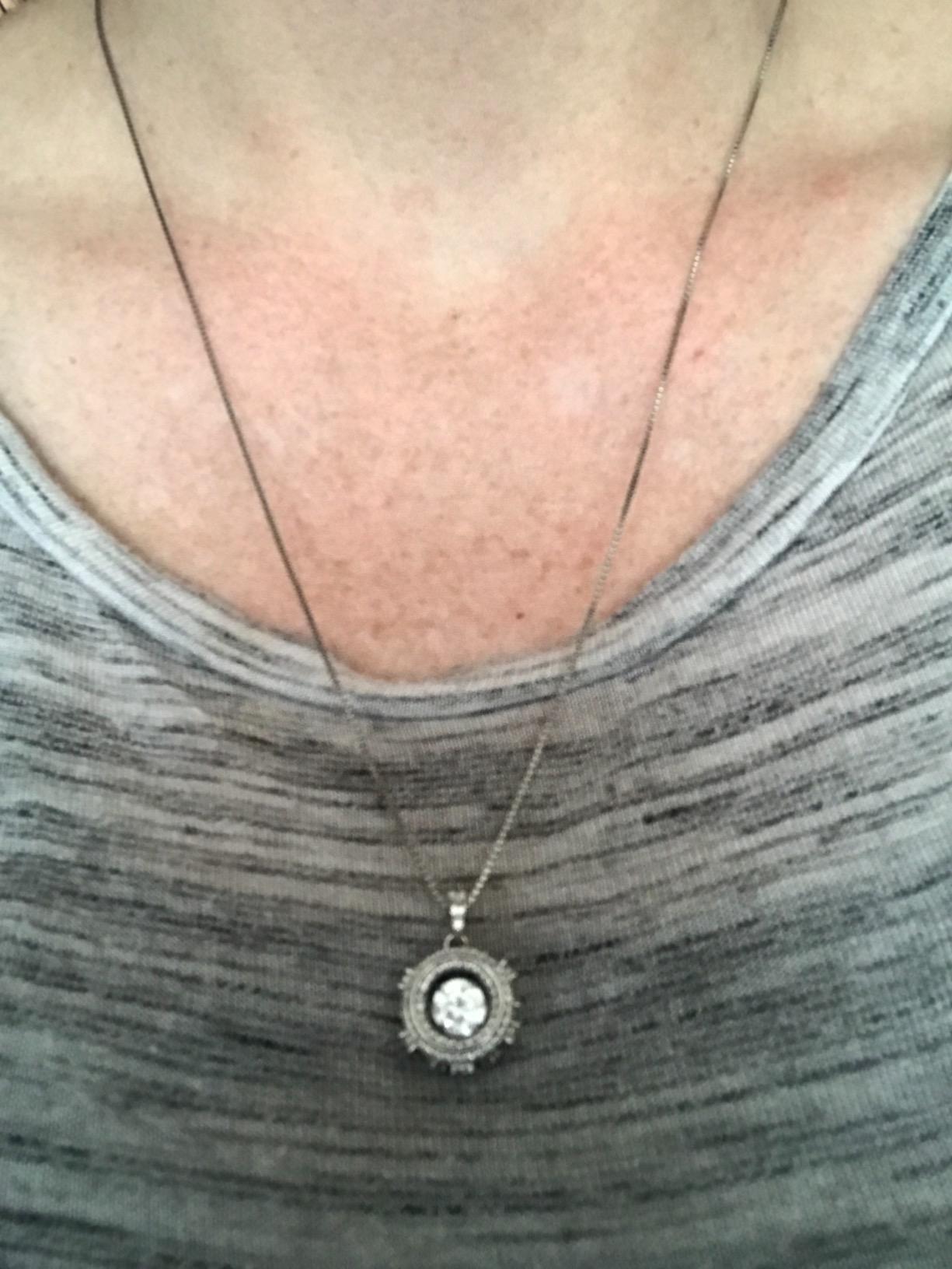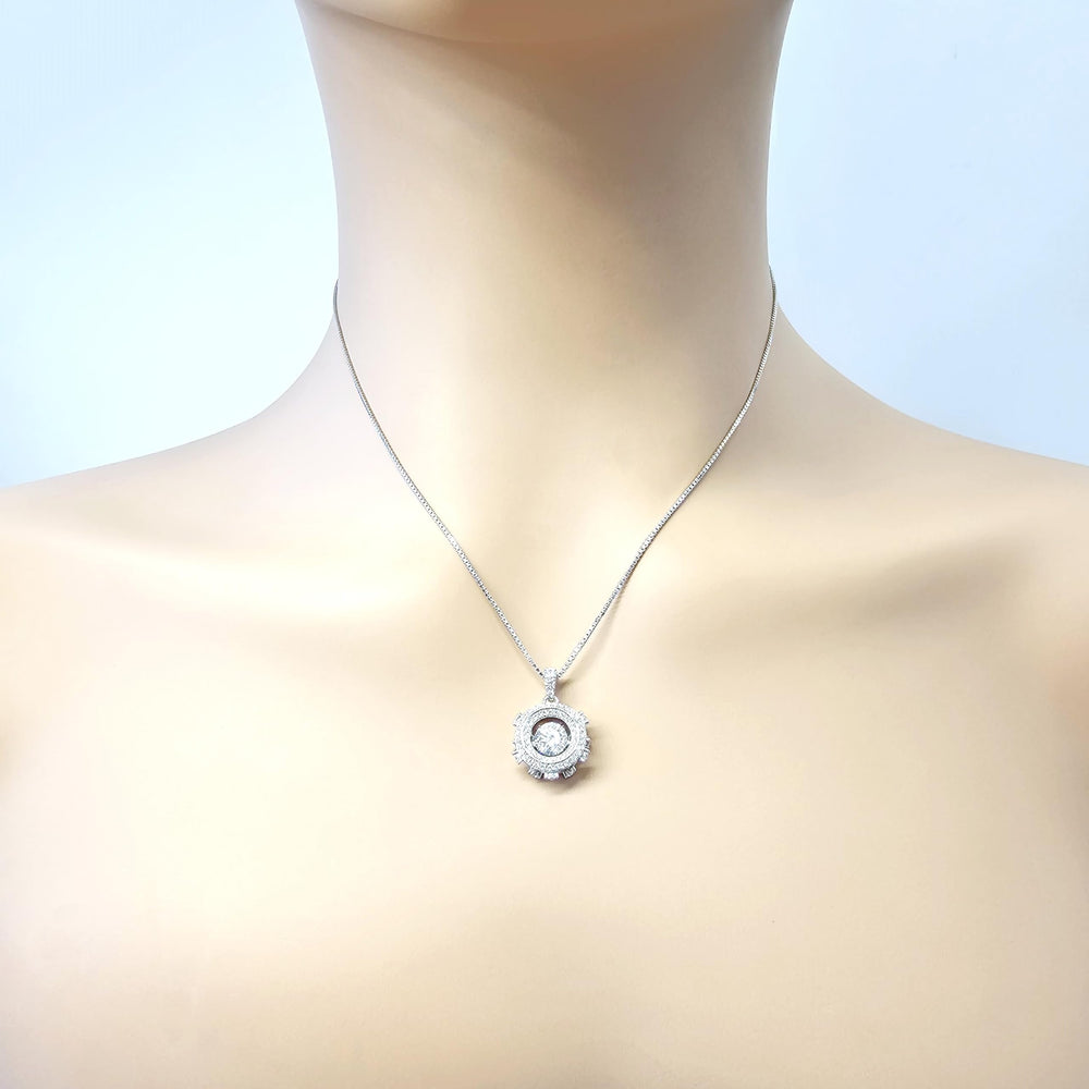 2. The Dancing Stone is a revolutionary patented mechanism allowing the center stone to continuously move, and sparkle, with even the smallest movement. The center stone is Pure Brilliance Zirconia. It is suspended from two fine points and is designed to not touch the body and continually move in a vibrating fashion. This looks like a diamond pendant necklace and is a great love necklace, eternity necklace, promise necklace, or a great gift for her. Looks great with a promise ring.