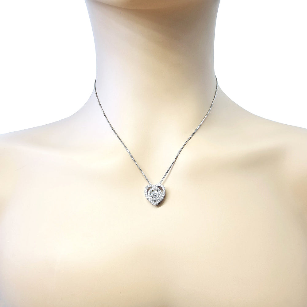 Circle in Heart Dancing Gemstone Necklace in Solid 925 Sterling Silver made w/ Pure Brilliance Zirconia