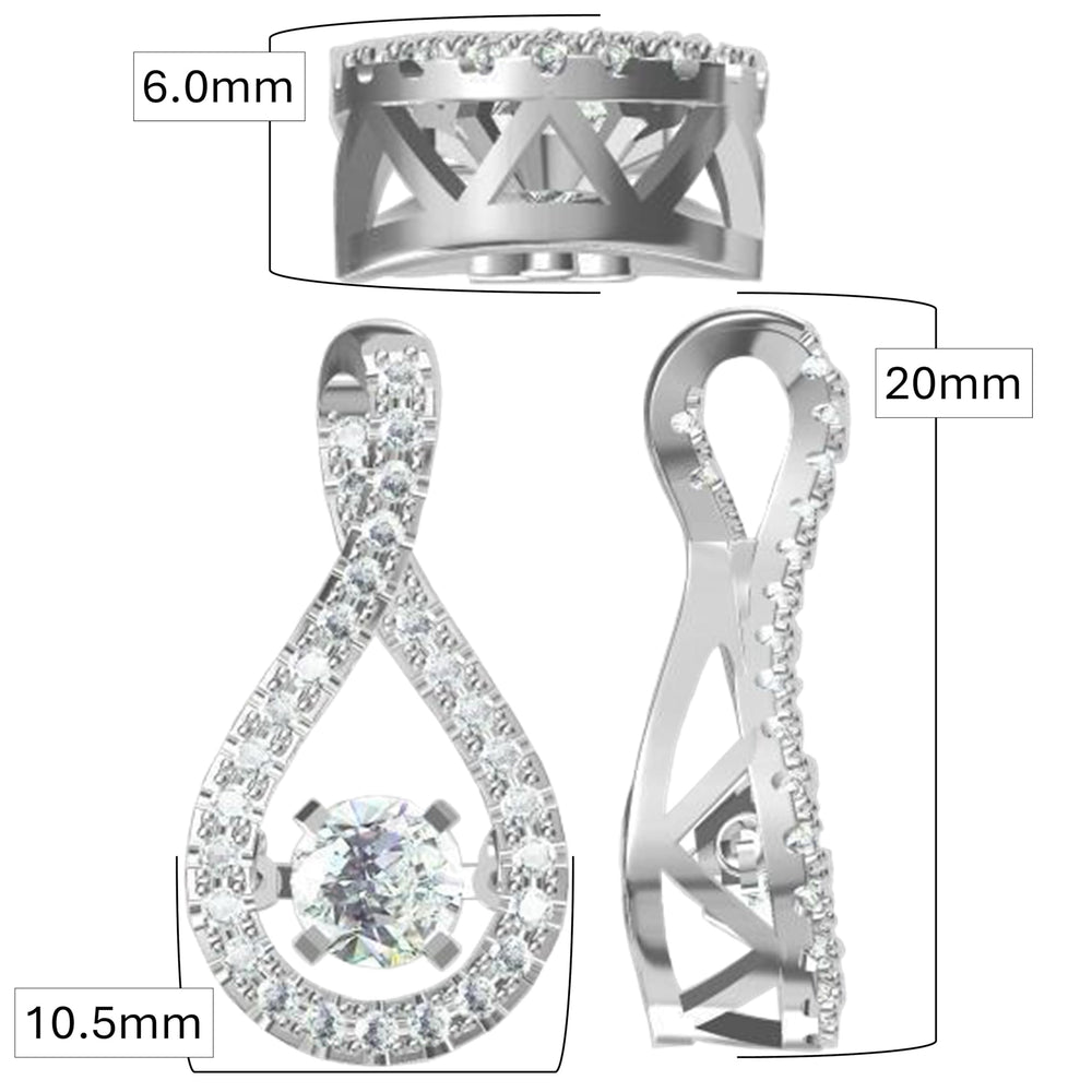 The "Dancing Stone" is a revolutionary patented mechanism allowing the center stone to continuously move, and sparkle, with the smallest movement. It will also move with the beat of her heart. The center stone is Pure Brilliance Zirconia and is suspended from two fine points and is designed so as to not touch the body but continually move in a vibrating fashion. This beautiful pendant is made from .925 sterling silver and comes with your choice of Platinum Plated, Yellow or Rose gold plated. It Includes .8mm 22-inch Adjustable Box Chain. This beautiful Pendant weight Approximately 4.3gr including the chain. It has one Round CZ in the center that measure 5.0mm, and 28-1.30mm Round Cubic Zirconia set in a in a twisted Pear Shape around the center stone. It measures 10.5mm wide, 20mm tall including the Bail, and 6.0mm Thick. Please view CAD image on this listing for more information. You will love this beautiful piece. It is manufactured according to our high quality standards.