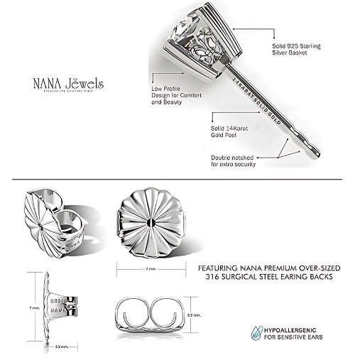 - Hypoallergenic For Sensitive Ears: Many men and women are allergic to metals found in jewelry, especially Nickel. However, this earring set features a 4-prong mount with a 14k solid gold post. Patent Pending to make these earrings as comfortable as possible for sensitive ears.